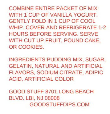 Just add vanilla yogurt and Cool Whip to Our desert dip mix to create the perfect dip for fresh fruit, cookies, or cubes of pound cake. This mix makes 2 cups of dip.