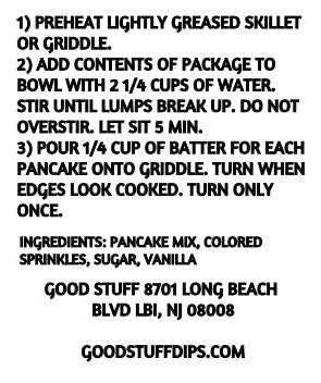 Just add water to make 12 fluffy 4" pancakes with the flavor of vanilla cake and packed with colorful sprinkles. This one is the kids favorite!