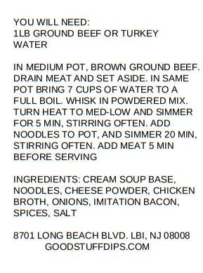 Just add ground beef or turkey and water for a quick homemade soup with all the flavors of a bacon cheeseburger. Makes around 2 quarts.
